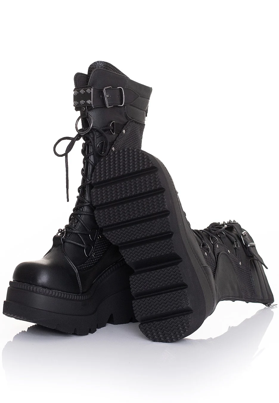 DemoniaCult - Shaker 70 Wedge Lace Up Mid Calf Black Vegan Leather - Girl Shoes